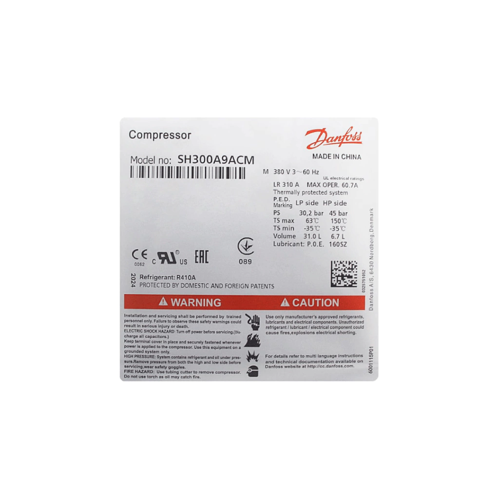 - > Compressor 25 TR , 380/60/3F R-410A Danfoss SH300A9ACC/M Scroll - 120H0492
