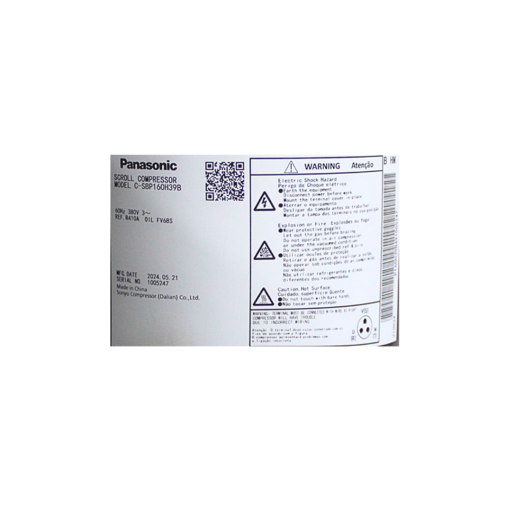 - > Compressor 60.000 Btu/h, 380/60/3F R410A Panasonic Scroll C-SBP160H39B - 05500105
