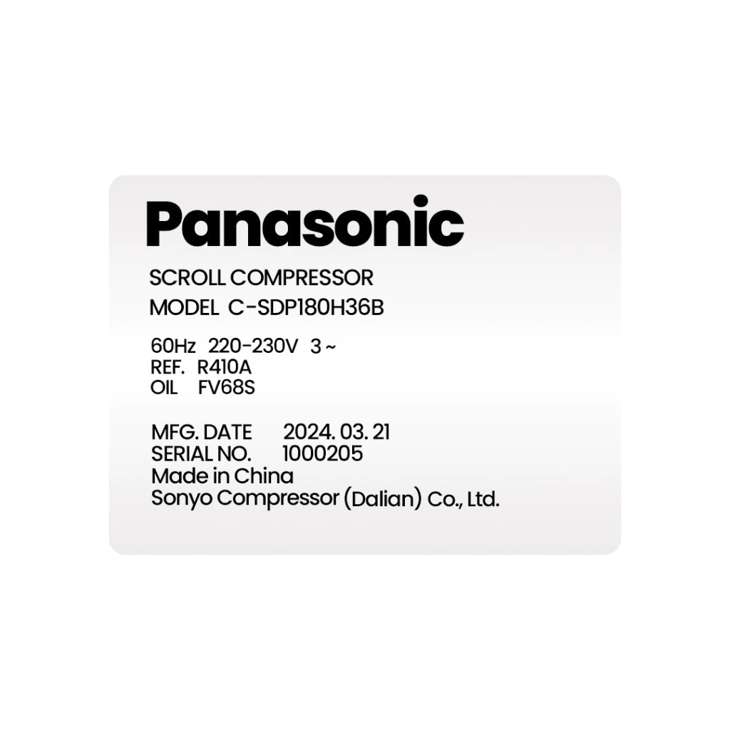 - > Compressor 60.000 Btu/h,220/60/3F R410A Panasonic Scroll C-SDP180H36B - 05500099