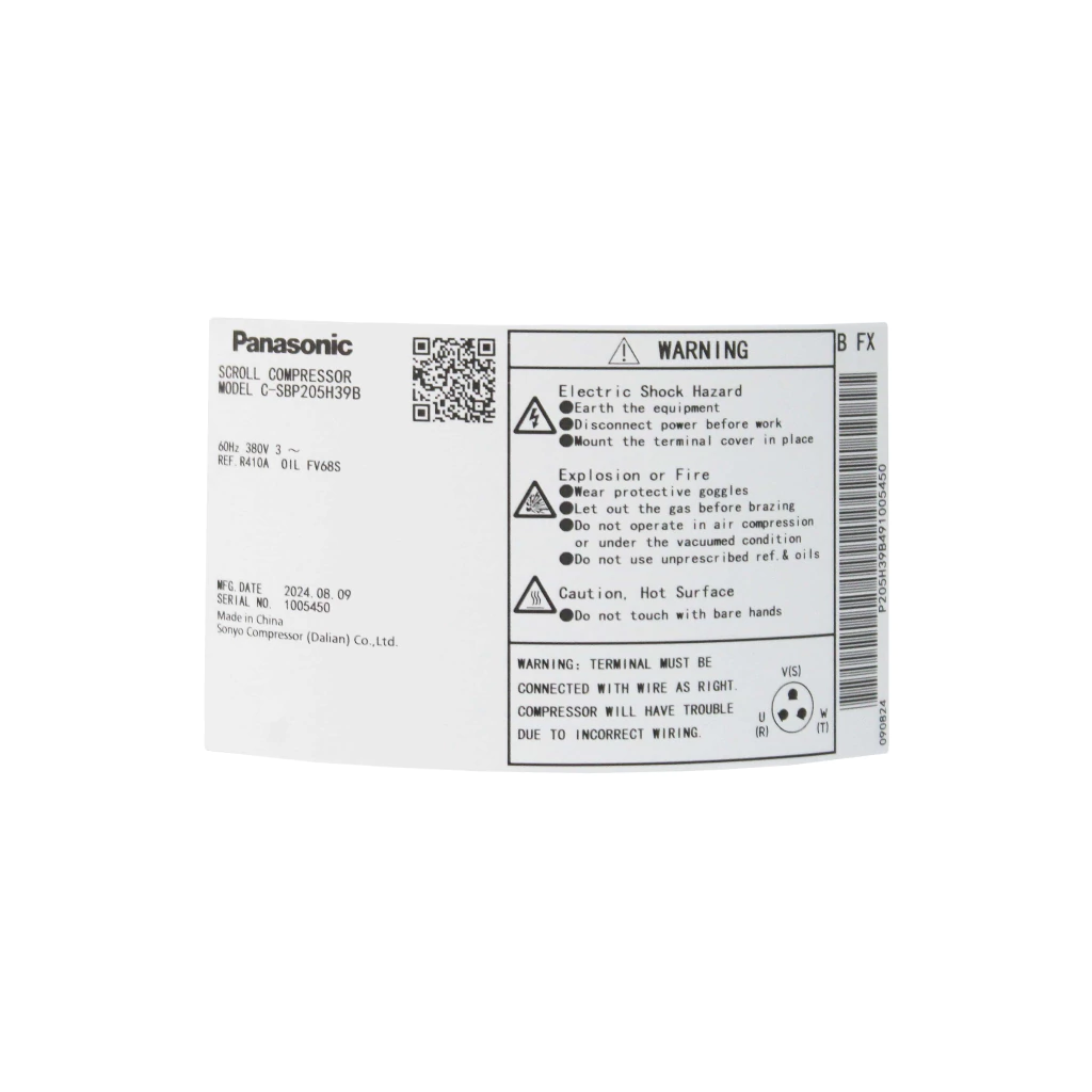 - > Compressor 72.000 Btu/h, 380/60/3F R410A Panasonic Scroll C-SBP205H39B - 05500118