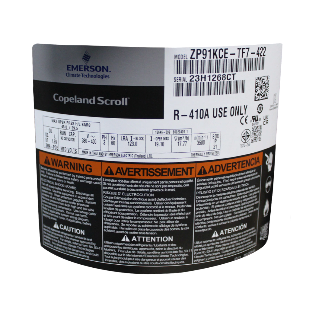 - > Compressor 7,5 TR, 380/60/3F R410A Copeland ZP91KCETF7422 - ZP91KCETF7422